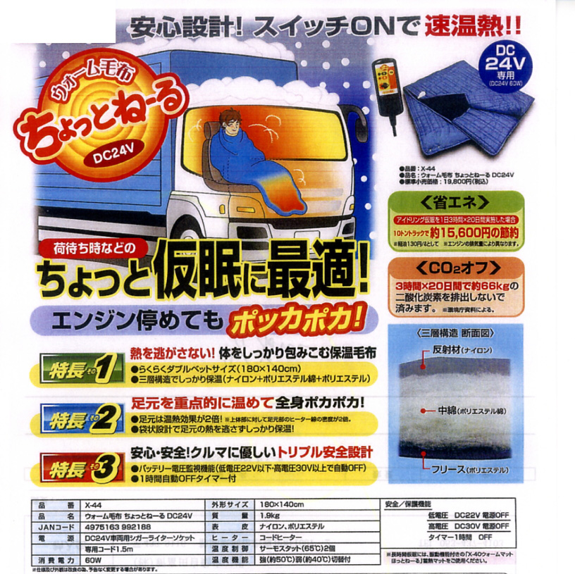 :ウォーム毛布 ちょっとねーる DC24V