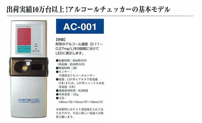アルコールチェッカー AC-001 | |||||||||||||||||||||