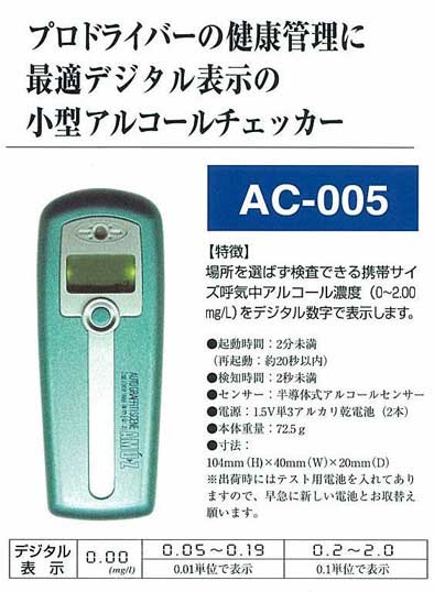 アルコールチェッカー AC-005 | ||||||||||||||||||