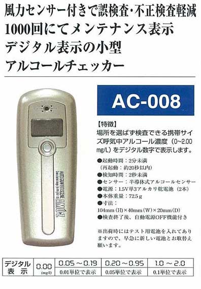 アルコールチェッカー AC-008 | ||||||||||||||||||
