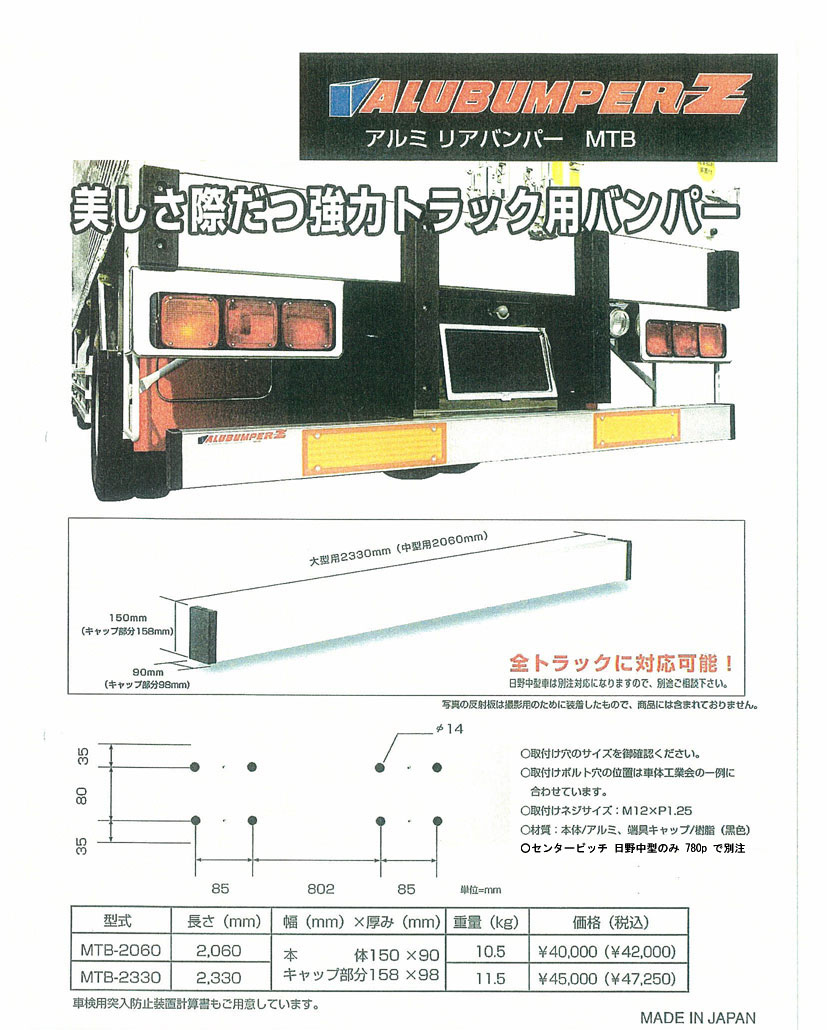●スチールメッキ仕様 ●ゴム付き ●国産品 ●高さ 33mmは車幅対応品 |