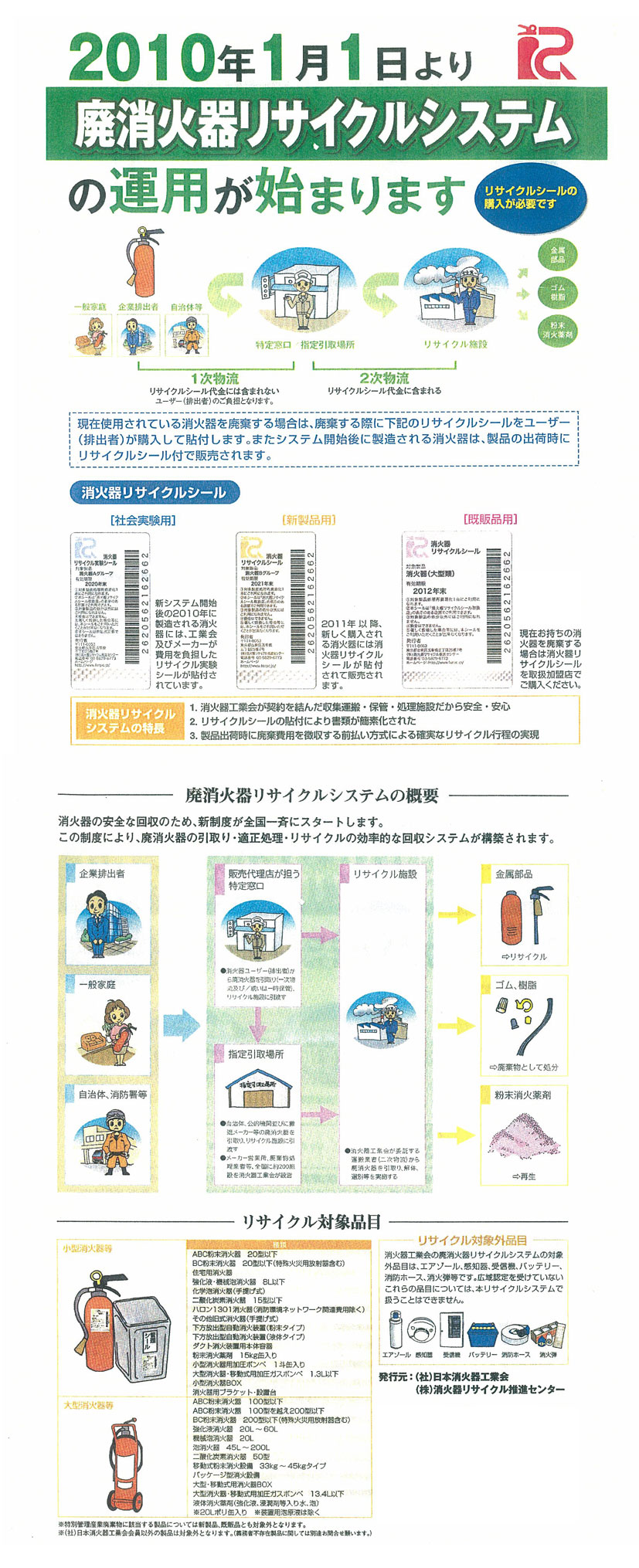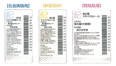 ●現在使用されている消火器を廃棄する場合は リサイクルシールを購入して貼付する必要があります。 ●システム開始後に製造される消火器は、製品の出荷時に リサイクルシール付で販売されます。 |