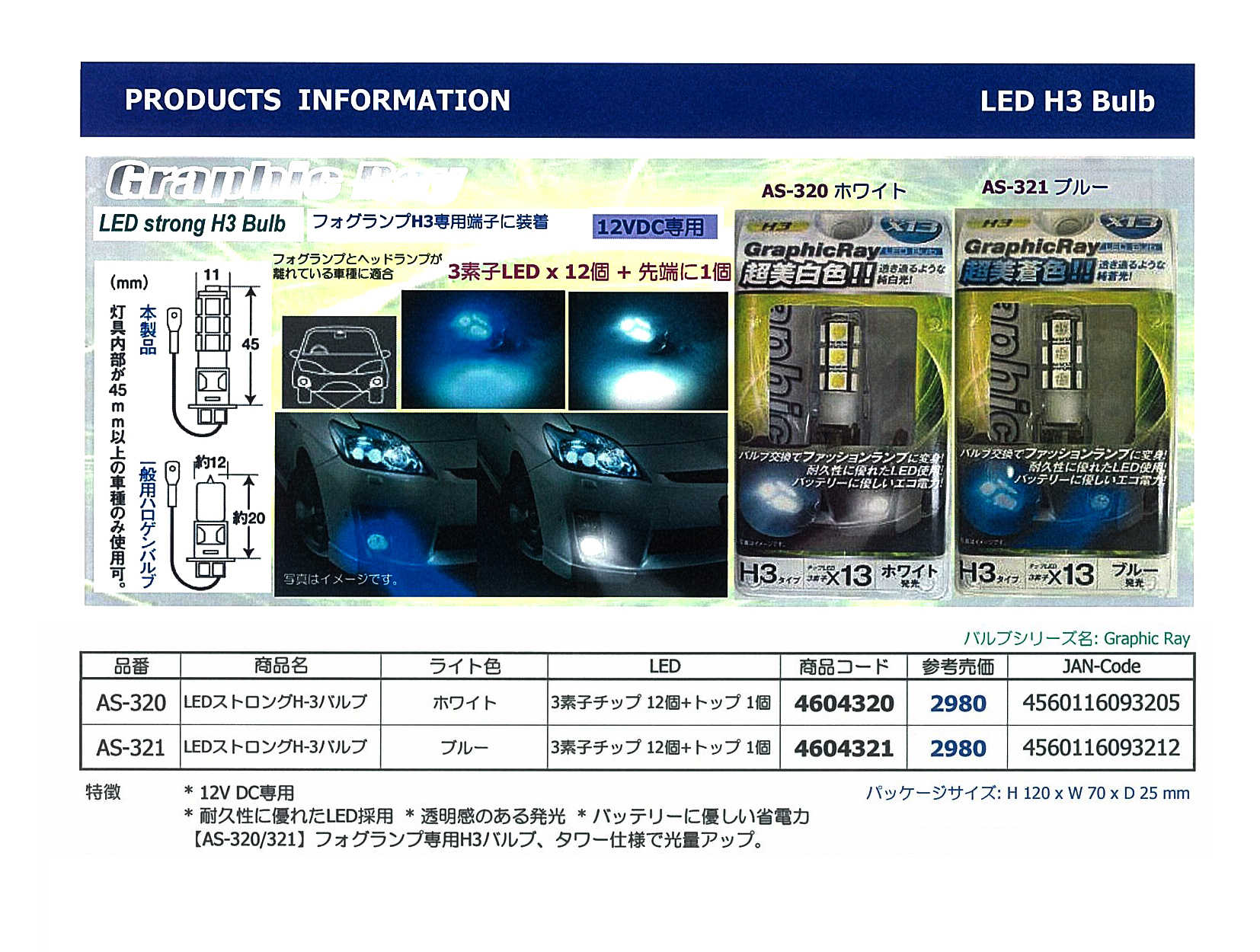 ●フォグランプH3専用端子に装着 ●フォグランプとヘッドランプが離れている車種に適合 ●フォグランプ専用H3バルブ、タワー仕様で光量アップ。 ●耐久性に優れたLED採用 ●透明感のある発光 ●バッテリーに優しい省電力 |