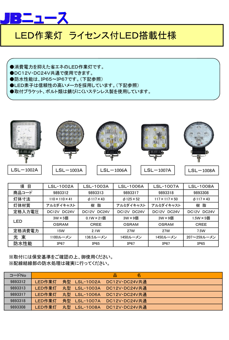 ●防水性能は、IP65〜IP67です。 ●LED素子は信頼性の高いメーカを採用しています。