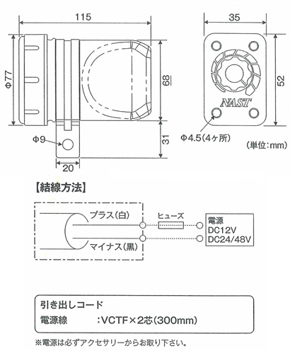 白色LED:1個(15,000mcd) |