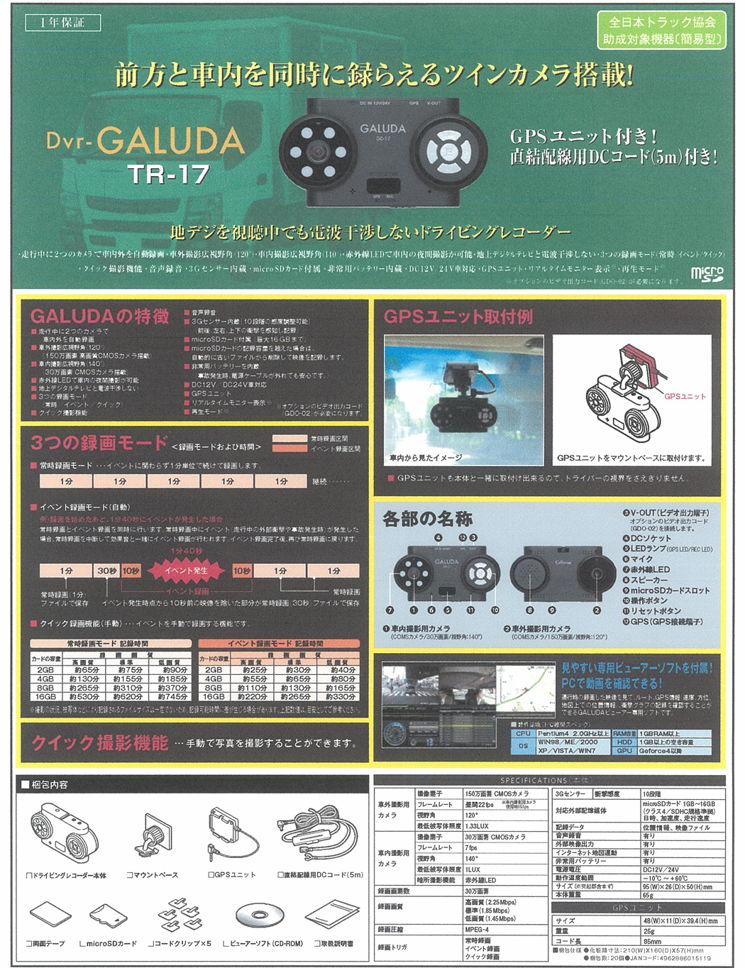 ・Dvr-GALUDA TR- 17(ドライブレコーダー)