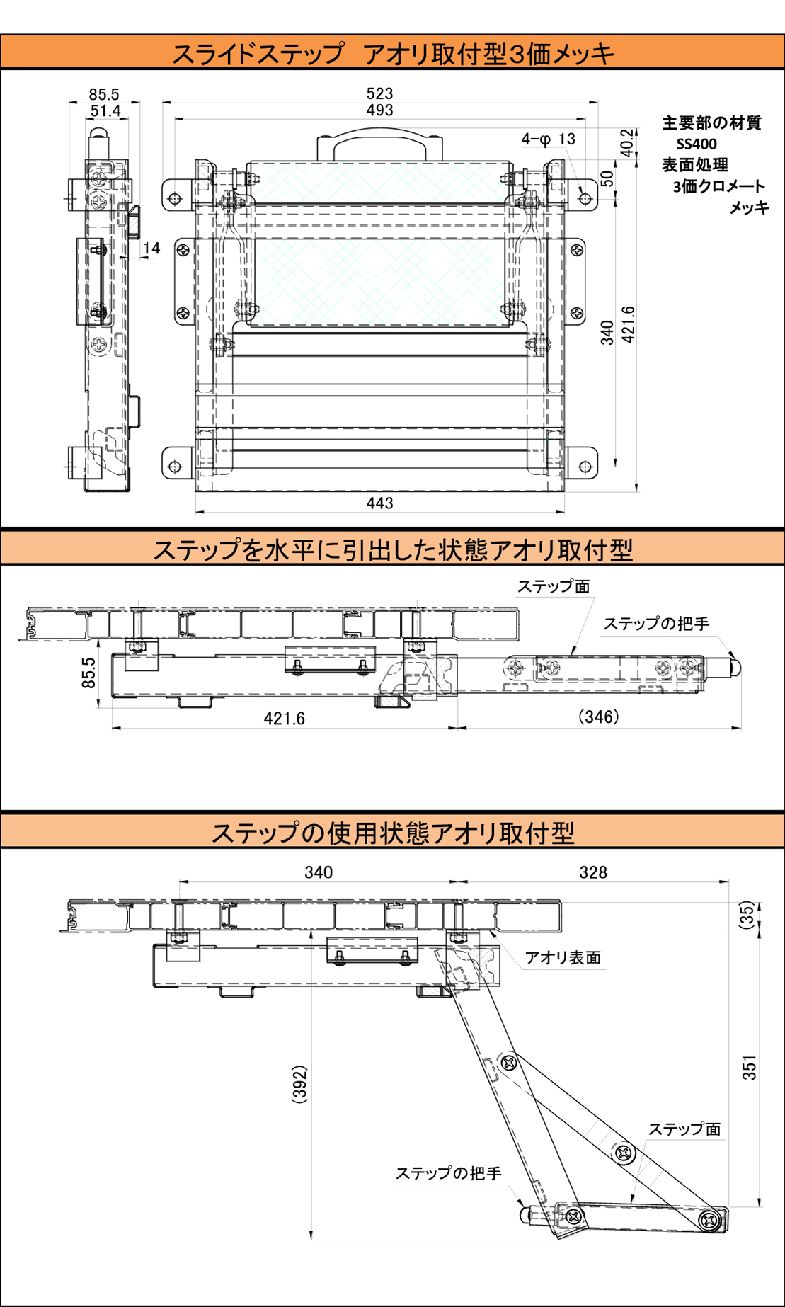 スライドステップ アオリ取付型 3価メッキ ※取扱終了 |