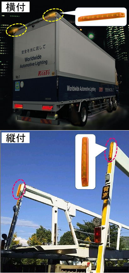 縦横兼用です。取付け幅の狭いキャリアカーや特殊車両等には縦型の取付をお勧めします。 |
