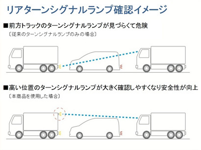 後続車にもアピールし、追突事故・巻き込み防止に役立ちます! |