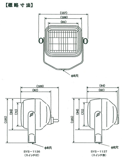 ON-OFFスイッチは、パネル防水(トグル)スイッチを採用(SYS-1136) |