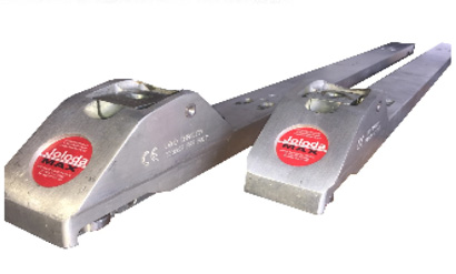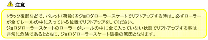●アルミフレーム採用により軽量化実現。-40%(7.2kg/本) ●サイドローラー内臓によりレールとの摩擦が軽減され、荷役作業がスムーズに行えます。 ●上昇高は18.8mmです。(床面からのパレット上昇高さ:16.4mm) ●1セット(2本)の最大積載量は2000kgです。 ●材質は、本体:アルミニウム / 駆動部:鉄 ![]() |