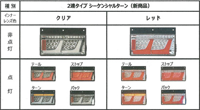 トラック用オールLEDリアコンビネーションランプ 2連タイプ シーケンシャルターン |