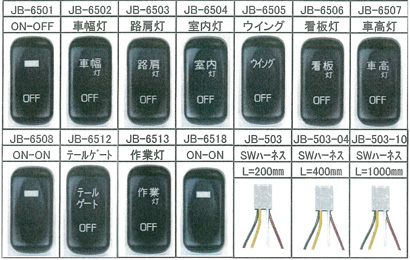 JB-6518はON-OFFスイッチと連結で階段式となります。庫内灯が点灯した時にLEDは点灯します。キャブ内、荷台に関係無くスイッチを切った時にLEDは消灯します。(階段タイプ) |