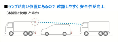 本商品は「乗員9人以下の乗用車」「車両総重量が3.5t以下の貨物車」「車両総重量750kg以下の被牽引車」及びそれ以外の車両でハイマウントストップランプが装着されている車両には使用できません。 |
