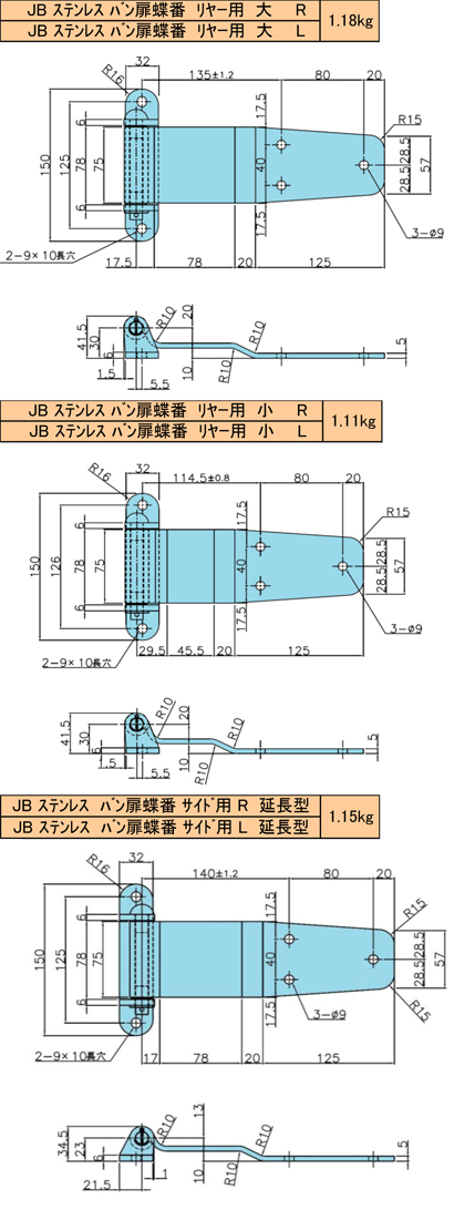ステンレス バン扉蝶番 | ||||||||||||