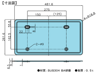 ステンレス ナンバープレート枠 薄型 プレス型 | ||||