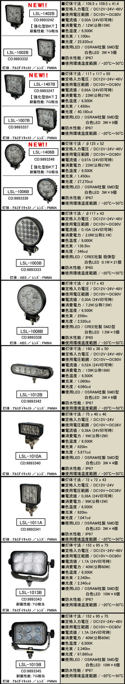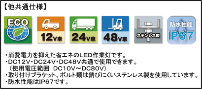 LED作業灯 強化型ブラケット仕様 | ||||||||||||||||||||