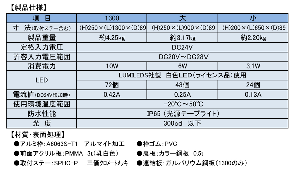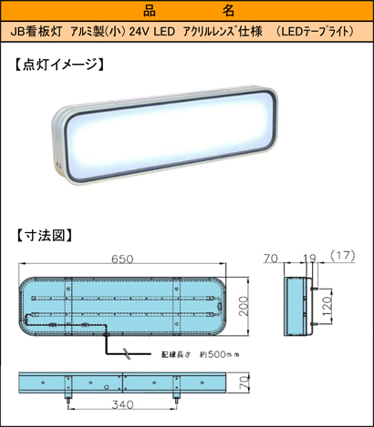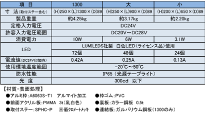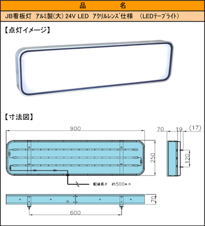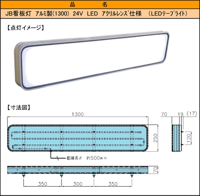 JB看板灯 アルミ製 24V LED アクリルレンズ仕様 1300タイプ |
